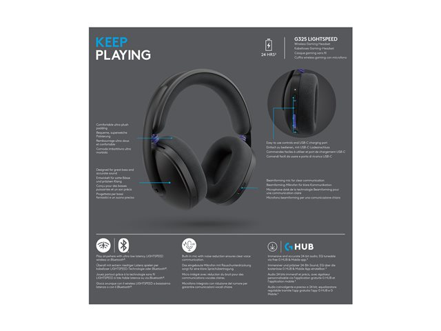 Logitech G G325 - Headset - fullstorlek - montering över örat - Bluetooth / LIGHTSPEED - trådlös - USB-C via Bluetooth-adapter - svart