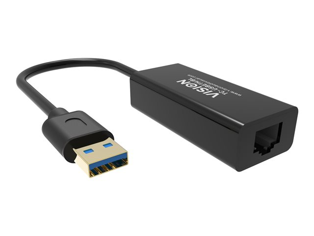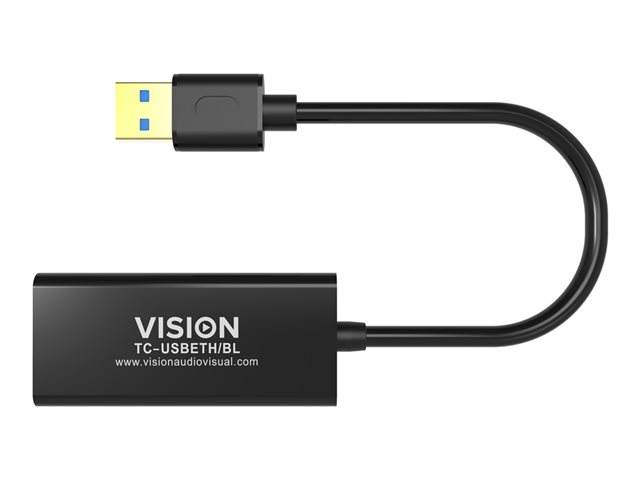 Vision TC-USBETH/BL - Nätverksadapter - USB 2.0 - Gigabit Ethernet x 1 - svart