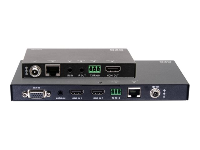 C2G Dual 4K HDMI HDBaseT + VGA, 3.5mm, and RS232 over Cat Switching Extender Box Transmitter to Ultra-Slim Box Receiver - 4K 60Hz - Video/ljud/seriell förlängare - sändare - HDBaseT, HDMI - över CAT 5e/6/6a/7 - upp till 70 m