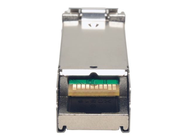 Eaton Tripp Lite Series SFP Transceiver MM Fiber Cisco GLC-SX-MMD Compatible 1000Base-SX 550M LC är en högpresterande nätverkslösning som är utformad för att uppfylla kraven i moderna Gigabit Ethernet-nätverk. Med en dataöverföringshastighet på 1,25 Gbps och stöd för Ethernet 1000Base-SX-kablar säkerställer den tillförlitliga höghastighetsanslutningar på avstånd upp till 550 m. Denna transceivermodul är utrustad med stöd för DDMI (Digital Diagnostics Monitoring Interface) och DOM (Digital Optical Monitoring), vilket ger realtidsinsikter i enhetens driftstatus för förbättrad nätverkssäkerhet. Det breda drifttemperaturområdet från 0°C till 70°C och luftfuktighetstoleransen från 5 till 95% (icke-kondenserande) gör den lämplig för en mängd olika miljöförhållanden. Dessutom säkerställer kompatibiliteten med MSA-standarder och Cisco GLC-SX-MMD att den kan integreras sömlöst i befintliga nätverksinfrastrukturer, vilket gör den till ett perfekt val för företag som vill uppgradera eller utöka sina nätverksfunktioner.