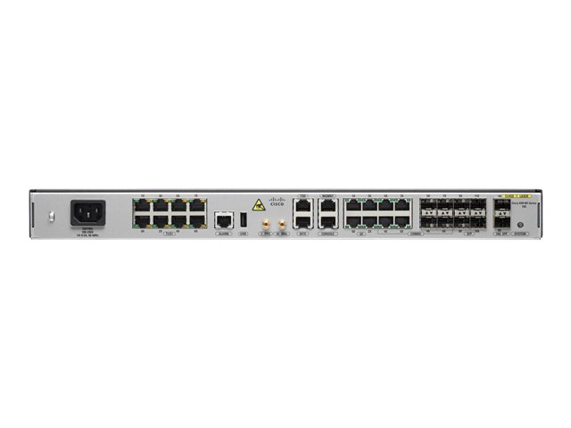 | Gränssnitt | WAN: 8 x T1/E1 8 x 10Base-T/100Base-TX/1000Base-T - RJ-45 8 x SFP (mini-GBIC) 2 x 10Gb Ethernet - SFP+ Seriell: 1 x konsol - RJ-45 USB: 1 x Hanrering: 1 x RJ-45 2 x RJ-45 |