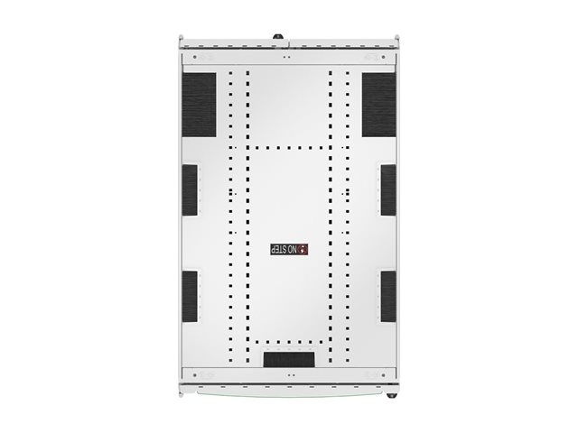 | Egenskaper | Integrerad kabelhantering, borttagbara sidopaneler, perforerad dörr (80%), 270° dörröppning, låsbara dörrar, 2 mm EIA-monteringsskenor |