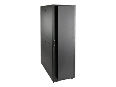 Eaton Tripp Lite Series 42U Rack Enclosure Server Cabinet är utformat för att optimera prestanda samtidigt som det upprätthåller en tyst miljö, vilket gör det lämpligt för alla serverrum eller datacenter. Detta skåp är tillverkat av kraftigt stål och klarar den dagliga användningen och garanterar lång hållbarhet. Det har ljuddämpande paneler för att minimera buller, vilket ger en bekvämare arbetsyta. Låsmekanismen ger säkerhet för värdefull utrustning, medan justerbara vertikala monteringsskenor rymmer olika hårdvarukonfigurationer.