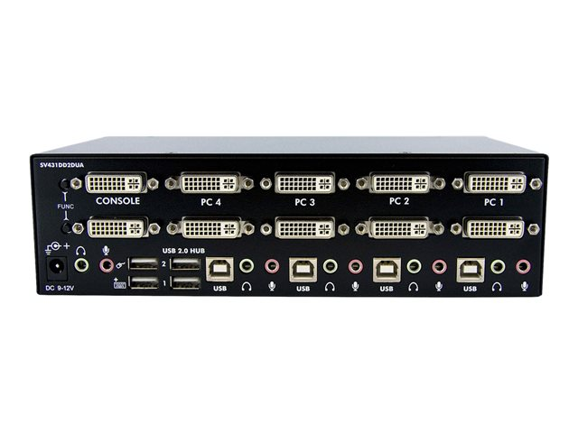StarTech.com 4-Port Dual KVM Switch with Audio for DVI Computers - Built-in USB Hub (SV431DD2DUA) - Omkopplare för tangentbord/video/mus/ljud/USB - 4 x KVM/ljud/USB - 1 lokal användare - skrivbordsmodell - för P/N: IM12D1500P, SV431RACK, SVA12M2NEUA, SVA12M5NA, USBDVI4N1A10, USBDVI4N1A6