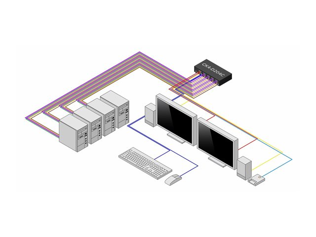 | Gränssnitt | 3 x USB Type A konsol 2 x DVI-I-utgång konsol 1 x ljud telefon stereo 3,5 mm 4 x ljudinmatning telefon stereo 3,5 mm värd 8 x DVI-I-ingång värd 8 x USB Type B värd |