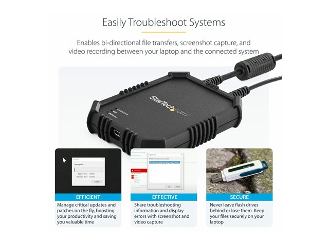 StarTech.com Portable Laptop Crash Cart Adapter, USB/VGA/Mini DisplayPort KVM Console, File Transfer and Video Capture - Omkopplare för tangentbord/video/mus - 1 x KVM port(s) - 1 lokal användare - skrivbordsmodell - TAA-kompatibel |
