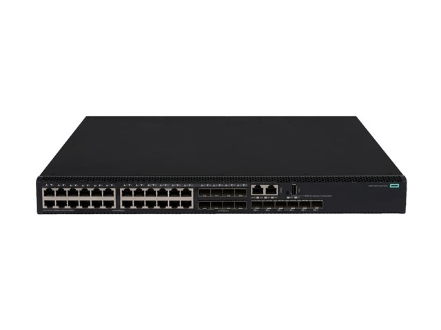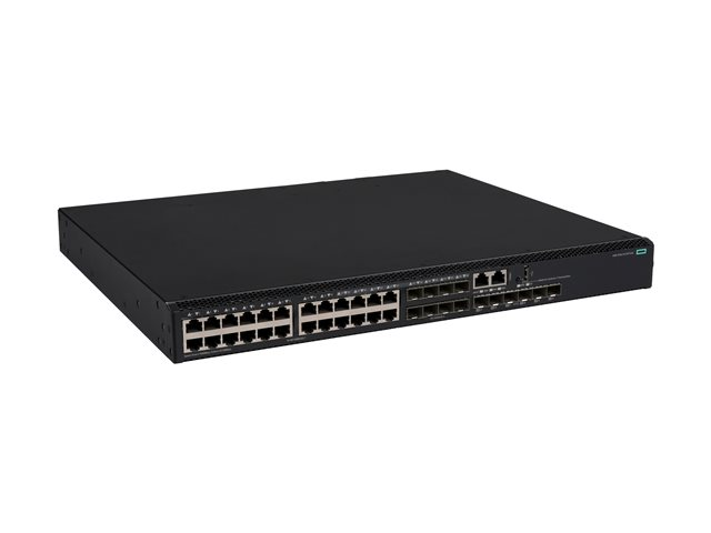 | Gränssnitt | 24 x 10/100/1000 Base-T RJ-45 8 x 100/1000 Base-X SFP kombination 6 x 10/25Gbit LAN SFP28 upplänk/stackning 1 x hantering RJ-45 nätverkshantering utanför band 1 x konsol RJ-45 |