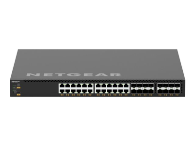 NETGEAR AV Line M4350-24X8F8V - Switch - L3 - Administrerad - 24 x 100/1000/2.5G/5G/10GBase-T (PoE++) + 8 x 10Gb Ethernet SFP+ + 8 x 25 Gigabit SFP28 - främre till bakre luftflöde - rackmonterbar - PoE++ (290 W) XSM4340V-100NES