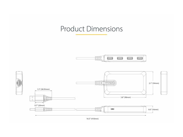 StarTech.com 4-Port USB Hub, USB 3.0 5Gbps, Bus Powered, USB-A to 4x USB-A Hub with Optional Auxiliary Power Input, Portable Desktop/Laptop USB Hub with 1ft (30cm) Attached Cable - USB Expansion Hub (5G4AB-USB-A-HUB) - Hubb - 4 x USB 3.2 Gen 1 + 1 x micro-USB - skrivbordsmodell