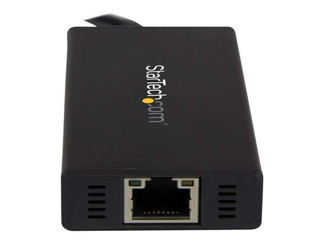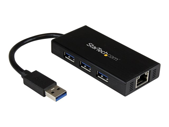 StarTech.com Bärbar USB 3.0-hubb med 3 portar plus Gigabit Ethernet - aluminium med inbyggd kabel - Hubb - 3 x SuperSpeed USB 3.0 + 1 x 10/100/1000 - skrivbordsmodell - för P/N: PEXUSB3S2EI, PEXUSB3S42, PEXUSB3S7, SVA5H2NEUA ST3300GU3B
