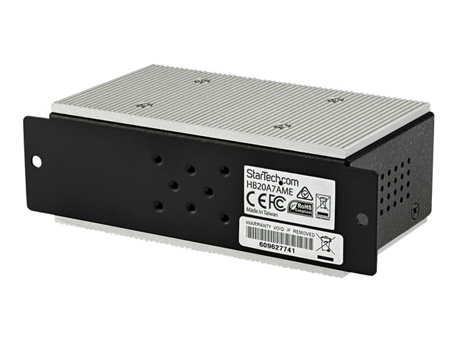 StarTech.com USB 2.0-hubb med 7 portar - Industriell USB-A-hubb i metall med ESD- och 350 W överspänningsskydd - Utökad driftstemperatur -40 till 85 &degC - monterbar på DIN-skena/vägg/skrivbord - USB-expansionshubb - Hubb - 7 x USB 2.0 - DIN-skenmonterbar - Likström - TAA-kompatibel - för P/N: ITB20D3250 HB20A7AME