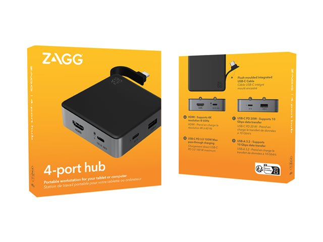ZAGG - Hubb - 1 x USB-C (Power Delivery 3.0) + 1 x USB-C (strömgenomströmning) + 1 x USB-A 3.0 + 1 x HDMI - skrivbordsmodell