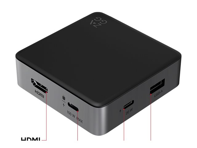 | Gränssnitt | 1 x USB-C (Power Delivery 3.0) 20 Watt 1 x USB-C (Power Delivery 3.0) max 100 W genomladdning 1 x USB 3.0 Type A 1 x HDMI |