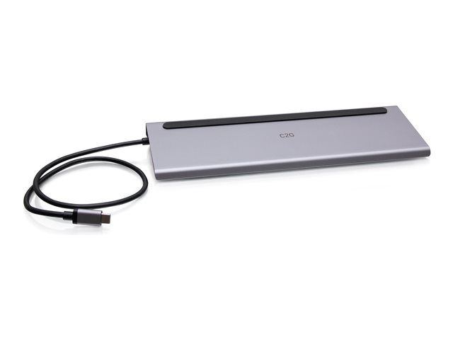 C2G USB-C 10-in-1 Triple Display Docking Station with HDMI, DisplayPort, VGA, Ethernet, USB, SD Card Reader, 3.5mm Audio and Power Delivery up to 100W - 4K 30Hz - Dockningsstation - USB-C - HDMI, DP, VGA - 1GbE