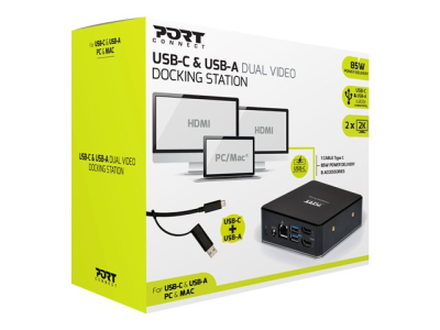 PORT connect USB-C & USB-A Dual Video Docking Station 2 X 2K - Dockningsstation - USB-C / USB 3.0 - 2 x HDMI - 1GbE - 100 Watt - Storbritannien