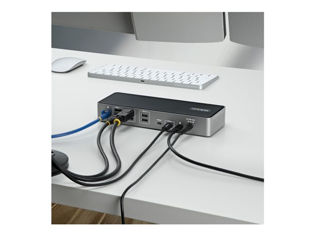 | Egenskaper | Stöd för Preboot Execution Environment (PXE), plats för säkerhetslås (kabellås säljs separat), 18W strömleverans, VESA-gränssnittsstöd, upp till 10 Gbps dataöverföring, wake on LAN, stöd för full duplex, UASP-stöd, upp till 140 W strömmatning, 4K Ultra HD, DisplayPort Alt Mode, stöd för tre bildskärmar, strömstatus-LED, stöd för jumbo-ramar |