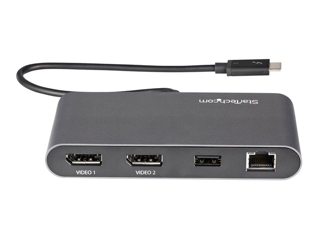 StarTech.com Thunderbolt 3 Mini Dock - Portable Dual Monitor w/ DP 4K 60Hz - 2X USB-A Hub (3.2/2.0), GbE - 28cm Cable - TB3 Multiport Adapter - Mac/Windows - Upgraded Version of TB3DKM2DP (TB3DKMDPL) - Dockningsstation - Thunderbolt 3 - 2 x DP - 1GbE