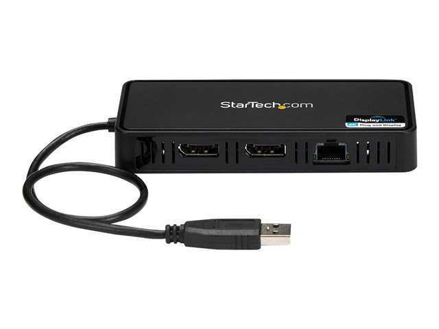StarTech.com USB 3.0 mini dockningsstation - Dubbla skärmar USB-A dockningsstation med DisplayPort 4K 60 Hz Video och Gigabit Ethernet - 30 cm kabel - Bärbar USB 3.1 Gen 1 Type-A adapter för bärbar dator - Dockningsstation - USB - 2 x DP - 1GbE