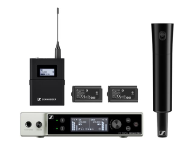 | Förpacknings innehåll | EW-DX SK sändare för ryggsäck, EW-DX SKM-S handhållen sändare, EW-DX EM 2 rackmonterad mottagare, 2 x BA 70 rechargeable batteries, mikrofonklämma, 2 stångantenner, GA 3 rackmonteringssatspaket, 4 gummifötter |