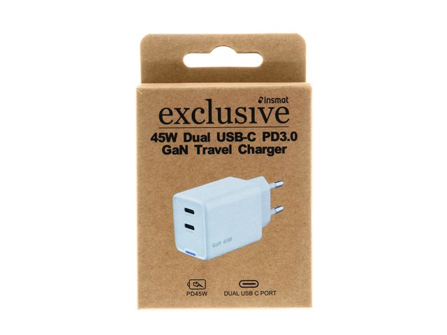 Insmat - Strömadapter - 45 Watt - 3 A - PD/PPS - 2 utdatakontakter (USB-C)